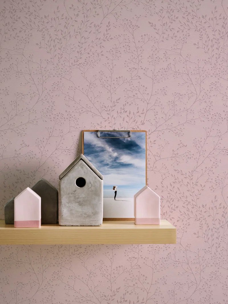 Starorůžová vliesová tapeta listy s leskem - přírodní motiv - vliesová tapeta od A.S.Création