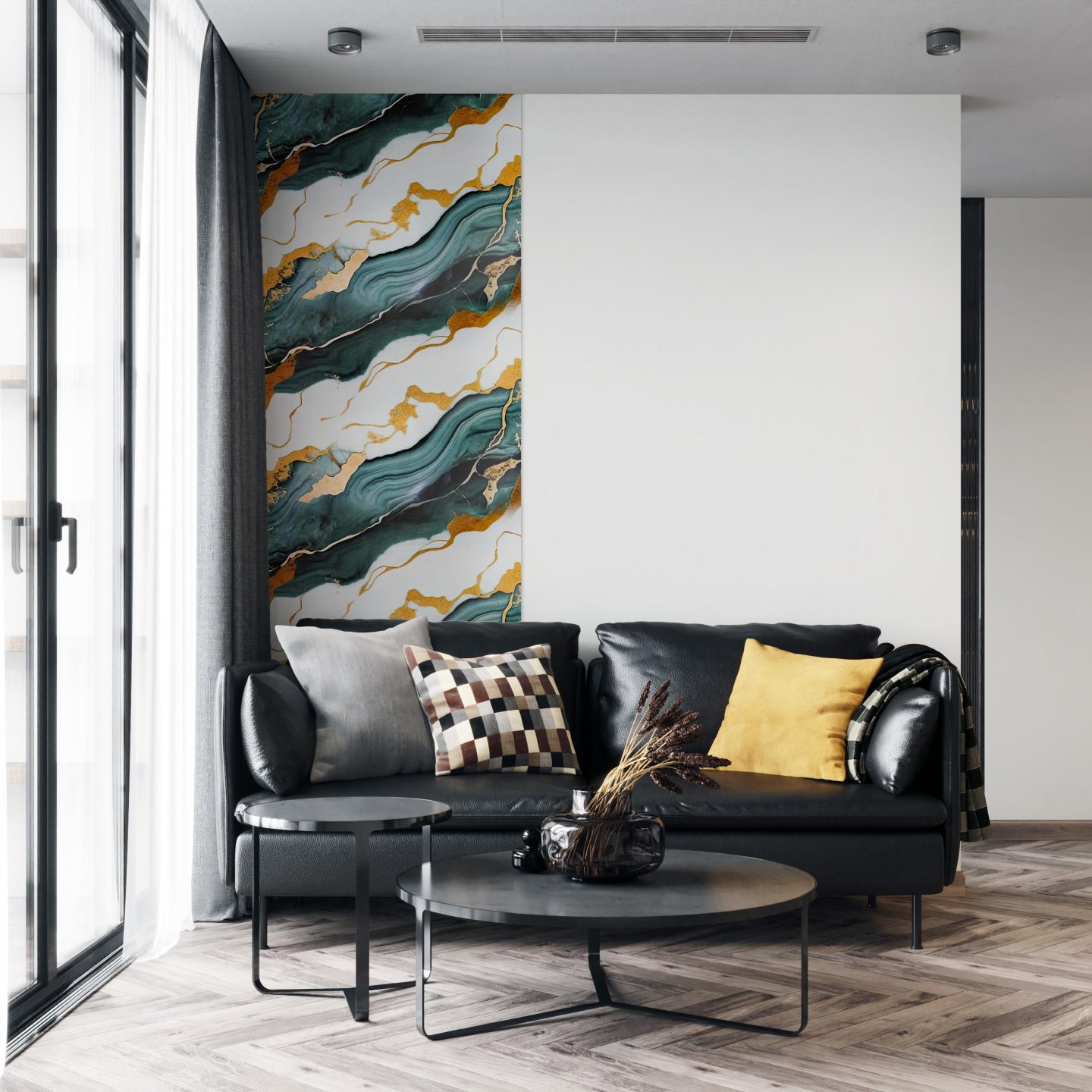 Mramorový efekt vytváří luxusní vzhled, vhodný do obývacích pokojů, kuchyní a koupelen, ale i kanceláří.