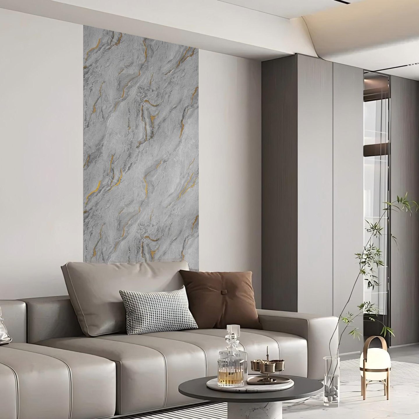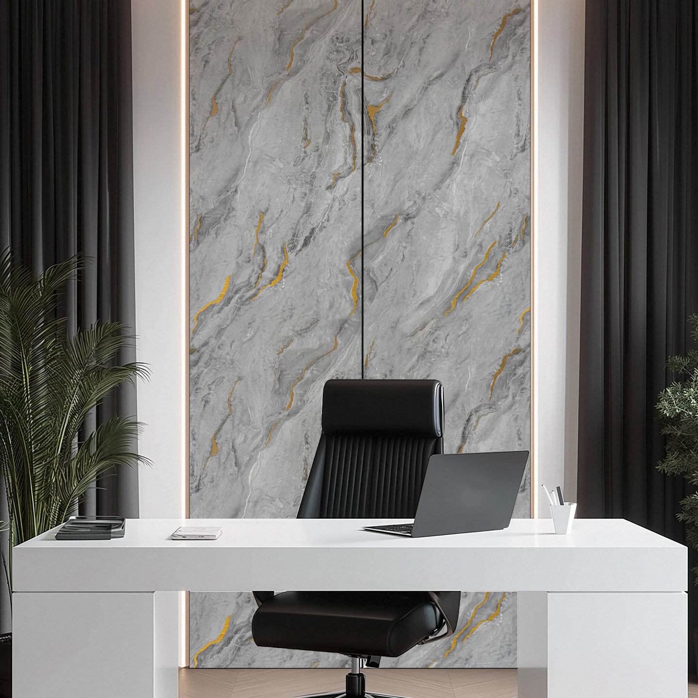 Mramorový efekt vytváří luxusní vzhled, vhodný do obývacích pokojů, kuchyní a koupelen, ale i kanceláří.