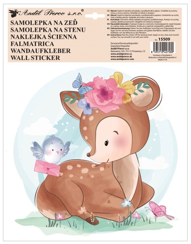 Pokojová samolepicí dekorace pro děti Srnka je určena na všechny povrchy. Lepí se na hladké, čisté plochy.