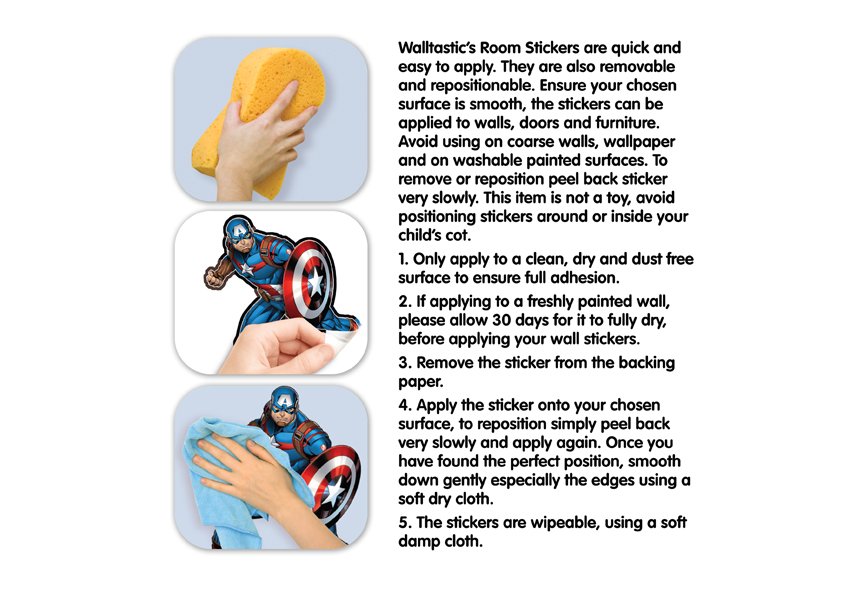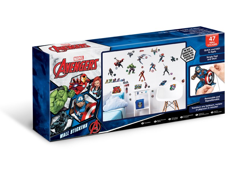 Dětská samolepicí dekorace Avengers obsahuje 3 archy, je vyrobená z kvalitního materiálu.
