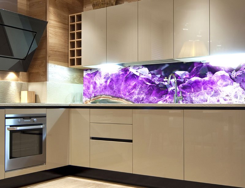 Samolepicí fototapeta mezi kuchyňskou linku Ametyst KI180-065 se skládá z jednoho dílu, je vyrobena z velmi kvalitní PVC laminované fólie, která je vysoce odolná vůči vodě a páře. Má hladký a polomatný povrch. Balení obsahuje návod k aplikaci. Lepí se na čistý, hladký a rovný podklad. Pochází z české výroby.