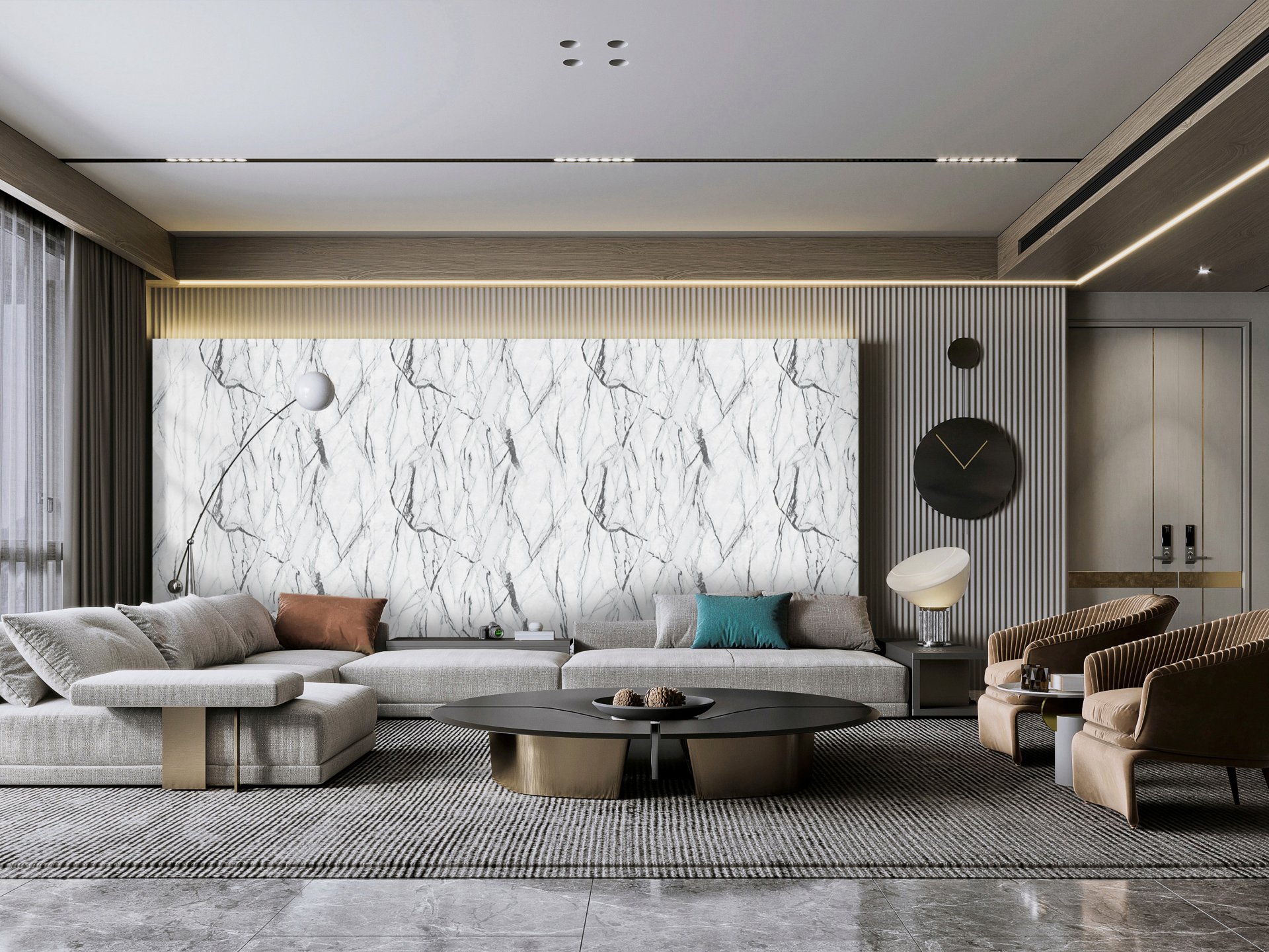 Mramorový efekt vytváří luxusní vzhled, vhodný do obývacích pokojů, kuchyní a koupelen, ale i kanceláří.