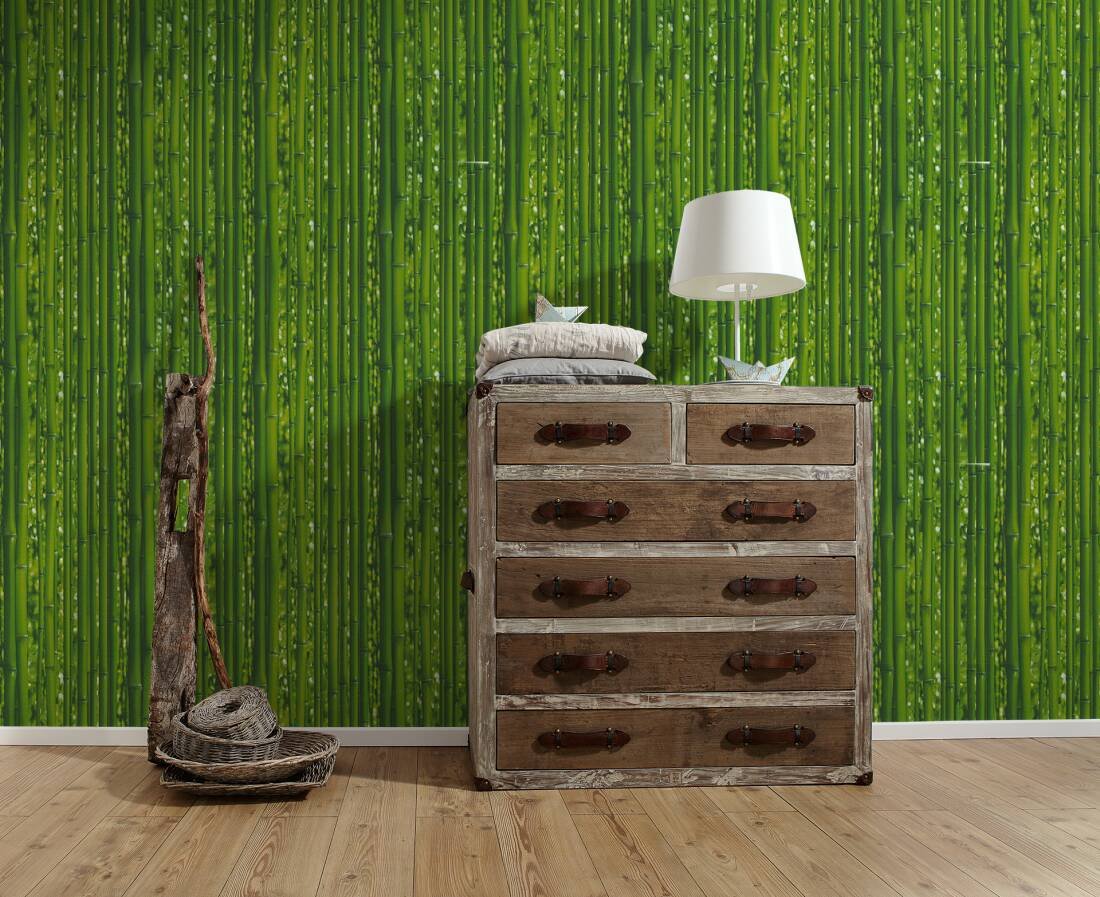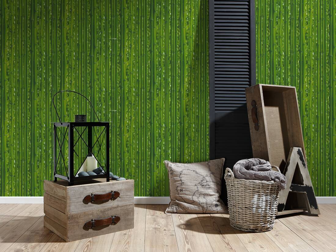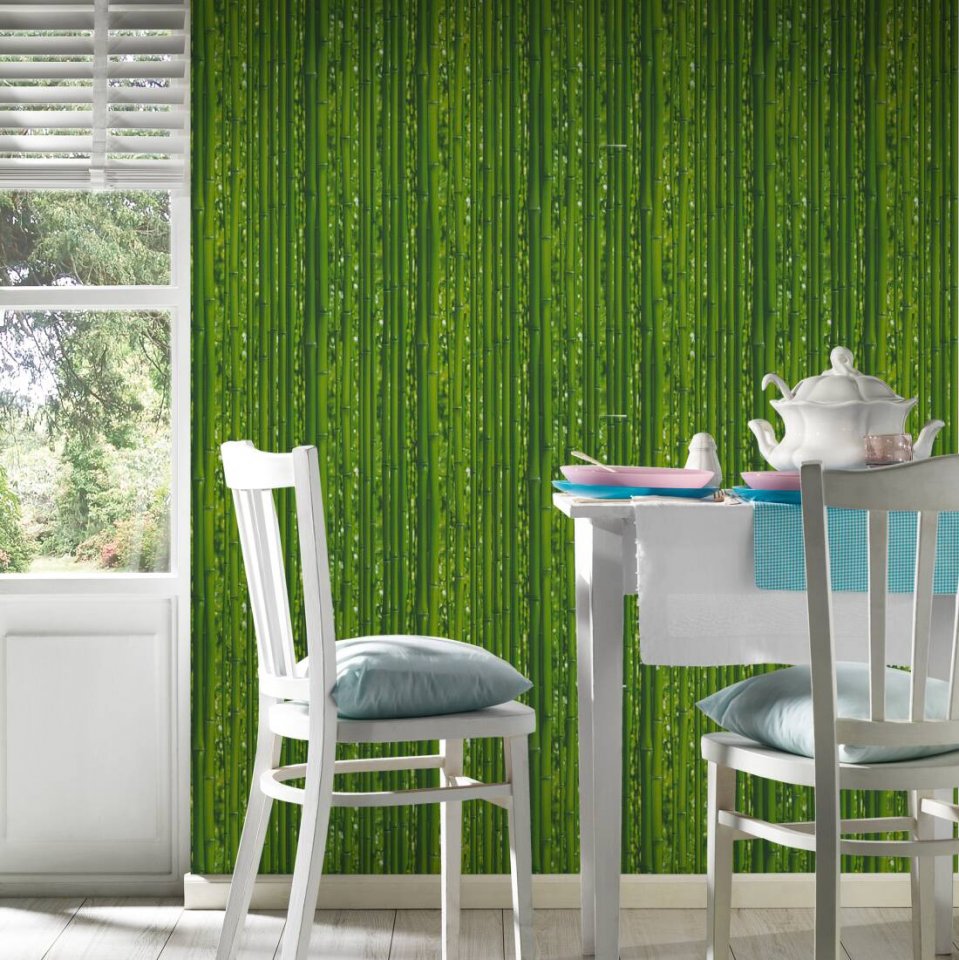 Vinylová tapeta s motivem zeleného bambusu. Designová vinylová tapeta 959361 z katalogu Il Decoro.