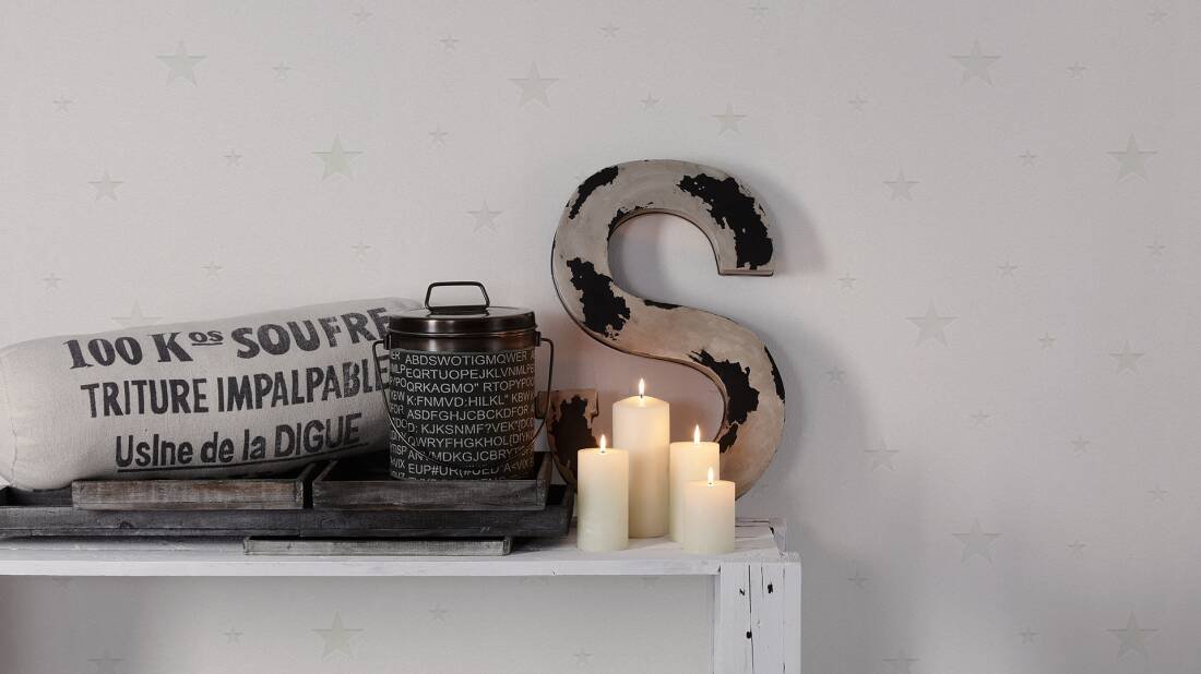 Moderní bílá vliesová tapeta s hvězdičkami 324401 z kolekce Il Decoro.