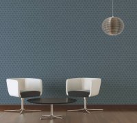 Geometrický vzor na vliesové tapetě 333274 je v modré a metalické barvě. Tato luxusní vliesová tapeta na stěnu pochází z katalogu AP Alpha.