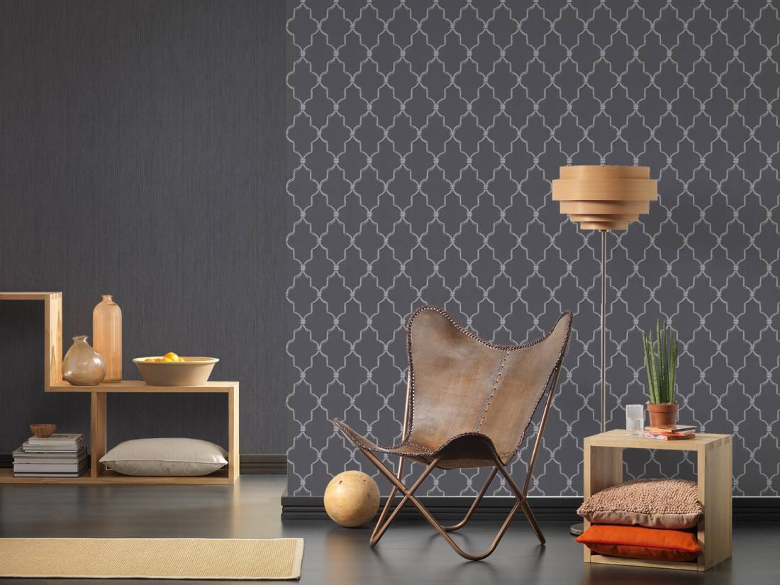 Jednobarevná vliesová tapeta 365001 z kolekce Michalsky Dream Again v šedo-černé barvě s povrchem, který imituje textil.