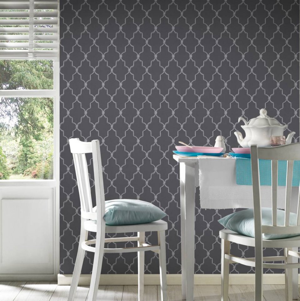 Moderní vliesová tapeta 365023 z kolekce Michalsky Dream Again se vzorem moderního baroka je v černé a šedé barvě.