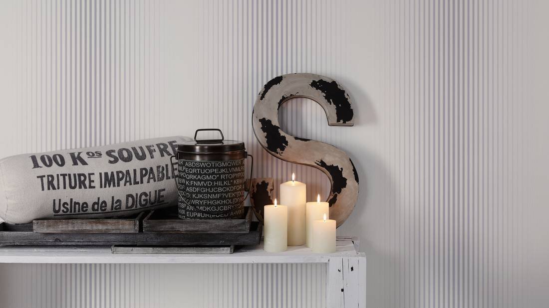 Fialové a bílé pruhy na vliesové tapetě do bytu 366782 z oblíbené kolekce Esprit 14.
