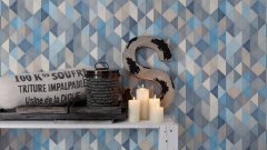 Skandinávský styl na vliesové tapetě 367863 z kolekce Trendwall. Geometrický vzor, barvy béžová, modrá, hnědá, šedá.