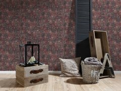 Moderní vliesová tapeta, kombinace květů a geometrického vzoru. Luxusní tapeta 373913 z kolekce New Walls v růžové, zlaté, hnědé a červené barvě.