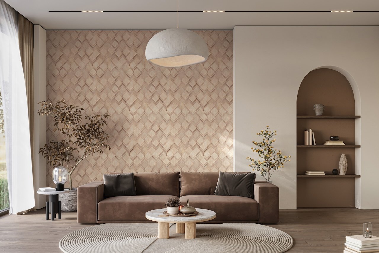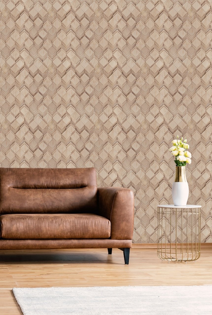 Designová vliesová tapeta s hnědým geometrickým vzorem - výrobce Marburg - kolekce Mona