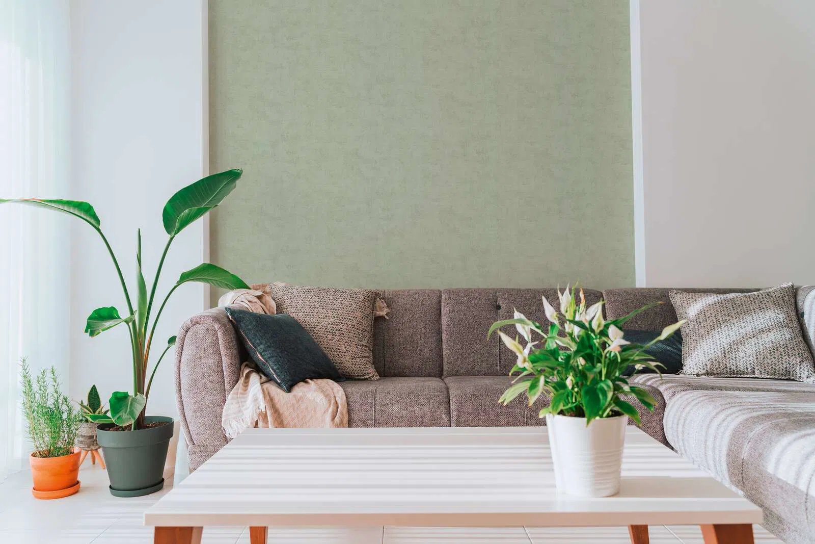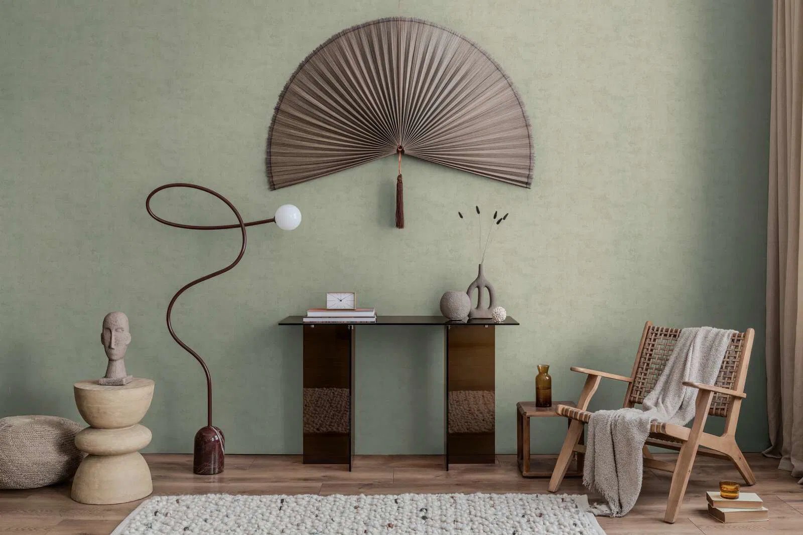 Jednobarevná vliesová tapeta v zeleno-šedé barvě, lehce strukturovaná - kolekce Nordic Feeling od německého výrobce tapet A.S.Création