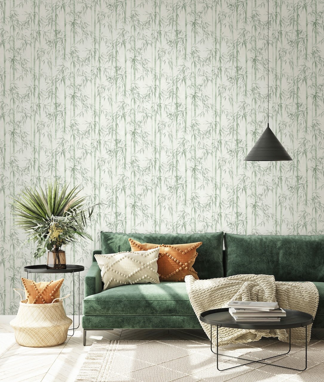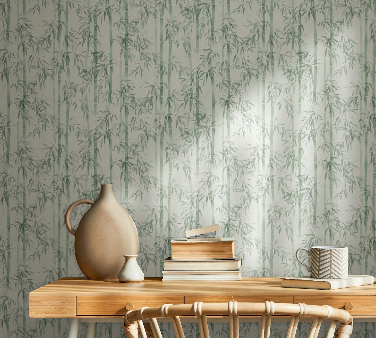 Moderní vliesová tapeta se vzorem bambusu v zelené barvě - výrobce Marburg - kolekce Mona
